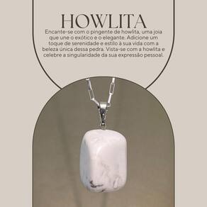O pingente de Howlita exibe um branco alabastro com veios cinzentos marcantes, oferecendo um visual tranquilo e ainda assim intrigante, perfeito para um toque de distinção.