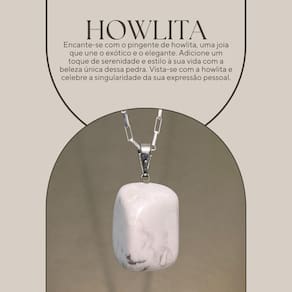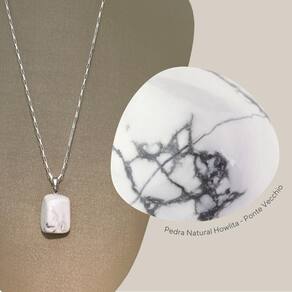 O pingente de Howlita exibe um branco alabastro com veios cinzentos marcantes, oferecendo um visual tranquilo e ainda assim intrigante, perfeito para um toque de distinção.
