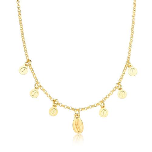 Este colar possui um lindo pingente de Grão de Café e diversas medalhinhas timbradas do grão. Revestido em banho hipoalergênico de Ouro 18k, traz a riqueza de detalhes em uma peça linda e delicada!