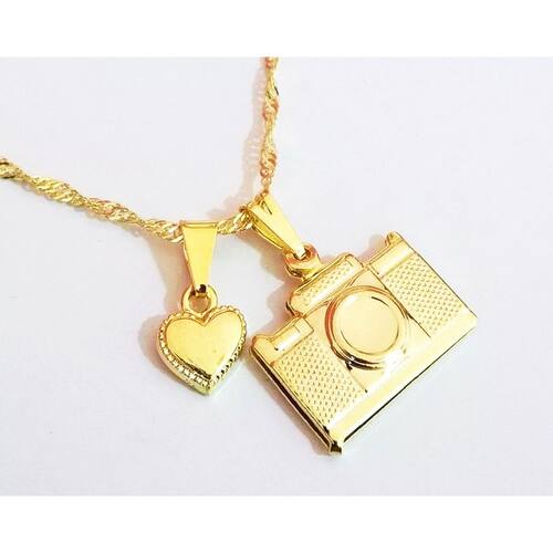 Colar Câmera Fotográfica Chapa Coração Folheado 18k