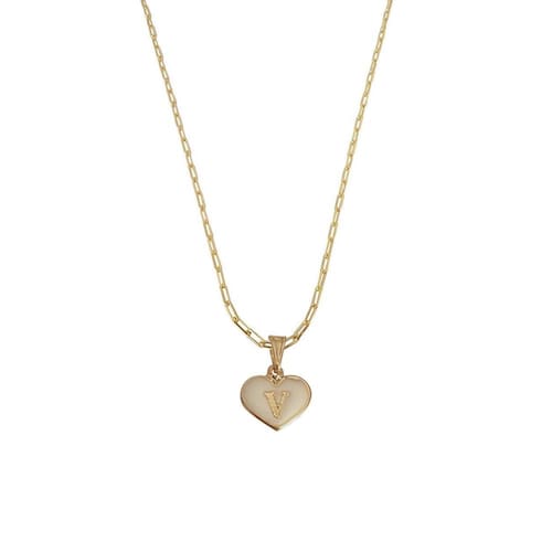 Colar feminino modelo Cartier com pingente Coração branco letra inicial V banhado em Ouro 18k. Delicado e cheio de significado, este colar apresenta um pingente em forma de coração, personalizado com a letra inicial. O colar perfeito para quem deseja manter alguém especial sempre perto do coração. Ideal para presentear ou para adicionar um toque pessoal ao seu estilo diário. Este colar banhado a Ouro é mais que um acessório; é uma declaração de amor. Especificações: Colar Cartier com pingente Coração Branco letra inicia V banhados em Ouro 18k. Tamanho do colar: 45 cm. Peso do colar: 3 g. Espessura do colar: 2 mm. Fecho do colar: lagosta. Antialérgico. Tamanho do pingente: 1,4 x 1,2 cm. Pingente banhado a Ouro com aplique de resina branca. Instruções de uso e conservação: Nossas peças são de excelente qualidade. Para manter o brilho e a beleza da joia; por favor siga estas dicas: Evite o uso da joia durante o banho, ter atenção ao aplique de cremes ou perfumes sobre a joia, evitar banho de piscina e mar com a joia; limpe-as sempre com flanela adequada, guarde-as separadamente. Com estes cuidados básicos a joia manterá sempre a originalidade e qualidade. Acompanha linda caixinha de presentes. sobre defeitos de fabricação: 6 meses. Seguindo nossas orientações de uso no certificado de , a joia permanecerá conservada por longos anos ou até décadas Marca: Anaisa Semijoias