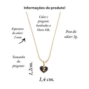 Colar feminino modelo Cartier com pingente Coração negro letra inicial Z banhado em Ouro 18k. Delicado e cheio de significado, este colar apresenta um pingente em forma de coração, personalizado com a letra inicial. O colar perfeito para quem deseja manter alguém especial sempre perto do coração. Ideal para presentear ou para adicionar um toque pessoal ao seu estilo diário. Este colar banhado a Ouro é mais que um acessório; é uma declaração de amor. Especificações: Colar Cartier com pingente Coração Negro letra inicia Z banhados em Ouro 18k. Tamanho do colar: 45 cm. Peso do colar: 3 g. Espessura do colar: 2 mm. Fecho do colar: lagosta. Antialérgico. Tamanho do pingente: 1,4 x 1,2 cm. Pingente banhado a Ouro com aplique de resina branca. Instruções de uso e conservação: Nossas peças são de excelente qualidade. Para manter o brilho e a beleza da joia; por favor siga estas dicas: Evite o uso da joia durante o banho, ter atenção ao aplique de cremes ou perfumes sobre a joia, evitar banho de piscina e mar com a joia; limpe-as sempre com flanela adequada, guarde-as separadamente. Com estes cuidados básicos a joia manterá sempre a originalidade e qualidade. Acompanha linda caixinha de presentes. sobre defeitos de fabricação: 6 meses. Seguindo nossas orientações de uso no certificado de , a joia permanecerá conservada por longos anos ou até décadas Marca: Anaisa Semijoias