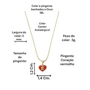 Colar feminino modelo Cartier com pingente Coração Vermelho letra inicial E banhado em Ouro 18k. Delicado e cheio de significado, este colar apresenta um pingente em forma de coração, personalizado com a letra inicial. O colar perfeito para quem deseja manter alguém especial sempre perto do coração. Ideal para presentear ou para adicionar um toque pessoal ao seu estilo diário. Este colar banhado a Ouro é mais que um acessório; é uma declaração de amor. Especificações: Colar Cartier com pingente Coração Vermelho letra inicia E banhados em Ouro 18k. Tamanho do colar: 45 cm. Peso do colar: 3 g. Espessura do colar: 2 mm. Fecho do colar: lagosta. Antialérgico. Tamanho do pingente: 1,4 x 1,2 cm. Pingente banhado a Ouro com aplique de resina branca. Instruções de uso e conservação: Nossas peças são de excelente qualidade. Para manter o brilho e a beleza da joia; por favor siga estas dicas: Evite o uso da joia durante o banho, ter atenção ao aplique de cremes ou perfumes sobre a joia, evitar banho de piscina e mar com a joia; limpe-as sempre com flanela adequada, guarde-as separadamente. Com estes cuidados básicos a joia manterá sempre a originalidade e qualidade. Acompanha linda caixinha de presentes. sobre defeitos de fabricação: 6 meses. Seguindo nossas orientações de uso no certificado de , a joia permanecerá conservada por longos anos ou até décadas Marca: Anaisa Semijoias