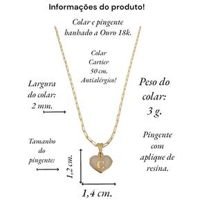 Colar feminino modelo Cartier com pingente Coração branco letra inicial C banhado em Ouro 18k. Delicado e cheio de significado, este colar apresenta um pingente em forma de coração, personalizado com a letra inicial. O colar perfeito para quem deseja manter alguém especial sempre perto do coração. Ideal para presentear ou para adicionar um toque pessoal ao seu estilo diário. Este colar banhado a Ouro é mais que um acessório; é uma declaração de amor. Especificações: Colar Cartier com pingente Coração Branco letra inicia C banhados em Ouro 18k. Tamanho do colar: 50 cm. Peso do colar: 3 g. Espessura do colar: 2 mm. Fecho do colar: lagosta. Antialérgico. Tamanho do pingente: 1,4 x 1,2 cm. Pingente banhado a Ouro com aplique de resina branca. Instruções de uso e conservação: Nossas peças são de excelente qualidade. Para manter o brilho e a beleza da joia; por favor siga estas dicas: Evite o uso da joia durante o banho, ter atenção ao aplique de cremes ou perfumes sobre a joia, evitar banho de piscina e mar com a joia; limpe-as sempre com flanela adequada, guarde-as separadamente. Com estes cuidados básicos a joia manterá sempre a originalidade e qualidade.