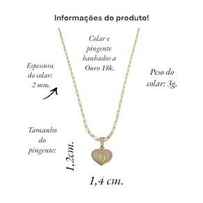 Colar feminino modelo Cartier com pingente Coração branco letra inicial D banhado em Ouro 18k. Delicado e cheio de significado, este colar apresenta um pingente em forma de coração, personalizado com a letra inicial. O colar perfeito para quem deseja manter alguém especial sempre perto do coração. Ideal para presentear ou para adicionar um toque pessoal ao seu estilo diário. Este colar banhado a Ouro é mais que um acessório; é uma declaração de amor. Especificações: Colar Cartier com pingente Coração Branco letra inicia D banhados em Ouro 18k. Tamanho do colar: 50 cm. Peso do colar: 3 g. Espessura do colar: 2 mm. Fecho do colar: lagosta. Antialérgico. Tamanho do pingente: 1,4 x 1,2 cm. Pingente banhado a Ouro com aplique de resina branca. Instruções de uso e conservação: Nossas peças são de excelente qualidade. Para manter o brilho e a beleza da joia; por favor siga estas dicas: Evite o uso da joia durante o banho, ter atenção ao aplique de cremes ou perfumes sobre a joia, evitar banho de piscina e mar com a joia; limpe-as sempre com flanela adequada, guarde-as separadamente. Com estes cuidados básicos a joia manterá sempre a originalidade e qualidade.