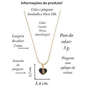 Colar feminino modelo Cartier com pingente Coração negro letra inicial B banhado em Ouro 18k. Delicado e cheio de significado, este colar apresenta um pingente em forma de coração, personalizado com a letra inicial. O colar perfeito para quem deseja manter alguém especial sempre perto do coração. Ideal para presentear ou para adicionar um toque pessoal ao seu estilo diário. Este colar banhado a Ouro é mais que um acessório; é uma declaração de amor. Especificações: Colar Cartier com pingente Coração Negro letra inicia B banhados em Ouro 18k. Tamanho do colar: 50 cm. Peso do colar: 3 g. Espessura do colar: 2 mm. Fecho do colar: lagosta. Antialérgico. Tamanho do pingente: 1,4 x 1,2 cm. Pingente banhado a Ouro com aplique de resina branca. Instruções de uso e conservação: Nossas peças são de excelente qualidade. Para manter o brilho e a beleza da joia; por favor siga estas dicas: Evite o uso da joia durante o banho, ter atenção ao aplique de cremes ou perfumes sobre a joia, evitar banho de piscina e mar com a joia; limpe-as sempre com flanela adequada, guarde-as separadamente. Com estes cuidados básicos a joia manterá sempre a originalidade e qualidade. Acompanha linda caixinha de presentes. sobre defeitos de fabricação: 6 meses. Seguindo nossas orientações de uso no certificado de , a joia permanecerá conservada por longos anos ou até décadas Marca: Anaisa Semijoias