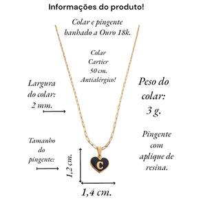 Colar feminino modelo Cartier com pingente Coração negro letra inicial C banhado em Ouro 18k. Delicado e cheio de significado, este colar apresenta um pingente em forma de coração, personalizado com a letra inicial. O colar perfeito para quem deseja manter alguém especial sempre perto do coração. Ideal para presentear ou para adicionar um toque pessoal ao seu estilo diário. Este colar banhado a Ouro é mais que um acessório; é uma declaração de amor. Especificações: Colar Cartier com pingente Coração Negro letra inicia C banhados em Ouro 18k. Tamanho do colar: 50 cm. Peso do colar: 3 g. Espessura do colar: 2 mm. Fecho do colar: lagosta. Antialérgico. Tamanho do pingente: 1,4 x 1,2 cm. Pingente banhado a Ouro com aplique de resina branca. Instruções de uso e conservação: Nossas peças são de excelente qualidade. Para manter o brilho e a beleza da joia; por favor siga estas dicas: Evite o uso da joia durante o banho, ter atenção ao aplique de cremes ou perfumes sobre a joia, evitar banho de piscina e mar com a joia; limpe-as sempre com flanela adequada, guarde-as separadamente. Com estes cuidados básicos a joia manterá sempre a originalidade e qualidade. Acompanha linda caixinha de presentes. sobre defeitos de fabricação: 6 meses. Seguindo nossas orientações de uso no certificado de , a joia permanecerá conservada por longos anos ou até décadas Marca: Não Informado