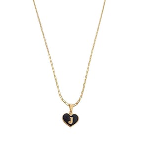 Colar feminino modelo Cartier com pingente Coração negro letra inicial J banhado em Ouro 18k. Delicado e cheio de significado, este colar apresenta um pingente em forma de coração, personalizado com a letra inicial. O colar perfeito para quem deseja manter alguém especial sempre perto do coração. Ideal para presentear ou para adicionar um toque pessoal ao seu estilo diário. Este colar banhado a Ouro é mais que um acessório; é uma declaração de amor. Especificações: Colar Cartier com pingente Coração Negro letra inicia J banhados em Ouro 18k. Tamanho do colar: 50 cm. Peso do colar: 3 g. Espessura do colar: 2 mm. Fecho do colar: lagosta. Antialérgico. Tamanho do pingente: 1,4 x 1,2 cm. Pingente banhado a Ouro com aplique de resina branca. Instruções de uso e conservação: Nossas peças são de excelente qualidade. Para manter o brilho e a beleza da joia; por favor siga estas dicas: Evite o uso da joia durante o banho, ter atenção ao aplique de cremes ou perfumes sobre a joia, evitar banho de piscina e mar com a joia; limpe-as sempre com flanela adequada, guarde-as separadamente. Com estes cuidados básicos a joia manterá sempre a originalidade e qualidade. Acompanha linda caixinha de presentes. sobre defeitos de fabricação: 6 meses. Seguindo nossas orientações de uso no certificado de , a joia permanecerá conservada por longos anos ou até décadas Marca: Anaisa Semijoias