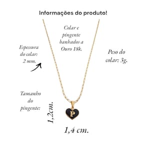 Colar feminino modelo Cartier com pingente Coração negro letra inicial P banhado em Ouro 18k. Delicado e cheio de significado, este colar apresenta um pingente em forma de coração, personalizado com a letra inicial. O colar perfeito para quem deseja manter alguém especial sempre perto do coração. Ideal para presentear ou para adicionar um toque pessoal ao seu estilo diário. Este colar banhado a Ouro é mais que um acessório; é uma declaração de amor. Especificações: Colar Cartier com pingente Coração Negro letra inicia P banhados em Ouro 18k. Tamanho do colar: 60 cm. Peso do colar: 3 g. Espessura do colar: 2 mm. Fecho do colar: lagosta. Antialérgico. Tamanho do pingente: 1,4 x 1,2 cm. Pingente banhado a Ouro com aplique de resina branca. Instruções de uso e conservação: Nossas peças são de excelente qualidade. Para manter o brilho e a beleza da joia; por favor siga estas dicas: Evite o uso da joia durante o banho, ter atenção ao aplique de cremes ou perfumes sobre a joia, evitar banho de piscina e mar com a joia; limpe-as sempre com flanela adequada, guarde-as separadamente. Com estes cuidados básicos a joia manterá sempre a originalidade e qualidade. Acompanha linda caixinha de presentes. sobre defeitos de fabricação: 6 meses. Seguindo nossas orientações de uso no certificado de , a joia permanecerá conservada por longos anos ou até décadas Marca: Anaisa Semijoias