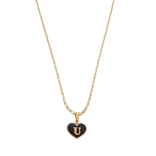 Colar feminino modelo Cartier com pingente Coração negro letra inicial U banhado em Ouro 18k. Delicado e cheio de significado, este colar apresenta um pingente em forma de coração, personalizado com a letra inicial. O colar perfeito para quem deseja manter alguém especial sempre perto do coração. Ideal para presentear ou para adicionar um toque pessoal ao seu estilo diário. Este colar banhado a Ouro é mais que um acessório; é uma declaração de amor. Especificações: Colar Cartier com pingente Coração Negro letra inicia U banhados em Ouro 18k. Tamanho do colar: 60 cm. Peso do colar: 3 g. Espessura do colar: 2 mm. Fecho do colar: lagosta. Antialérgico. Tamanho do pingente: 1,4 x 1,2 cm. Pingente banhado a Ouro com aplique de resina branca. Instruções de uso e conservação: Nossas peças são de excelente qualidade. Para manter o brilho e a beleza da joia; por favor siga estas dicas: Evite o uso da joia durante o banho, ter atenção ao aplique de cremes ou perfumes sobre a joia, evitar banho de piscina e mar com a joia; limpe-as sempre com flanela adequada, guarde-as separadamente. Com estes cuidados básicos a joia manterá sempre a originalidade e qualidade. Acompanha linda caixinha de presentes. sobre defeitos de fabricação: 6 meses. Seguindo nossas orientações de uso no certificado de , a joia permanecerá conservada por longos anos ou até décadas Marca: Anaisa Semijoias