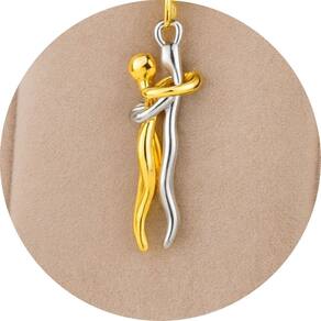 Colar Casal Magnético Prateado e Dourado com Pingente é a joia perfeita para simbolizar amor e união. O pingente traz duas figuras estilizadas se abraçando, em acabamento bicolor dourado e prata, que se atraem e se unem através de um ímã interno. Um acessório romântico e cheio de significado, ideal para casais apaixonados. Pode ser utilizado no dia a dia ou em ocasiões especiais, sendo também uma excelente opção de presente criativo e simbólico.