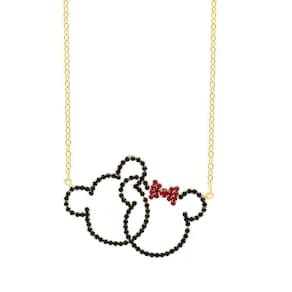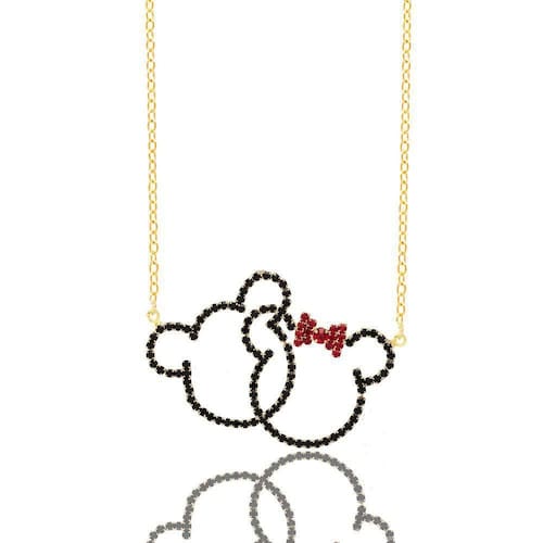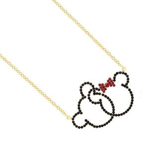 Colar Casal Mickey E Minnie Strass Preto Vermelho Folheado A Ouro 18k