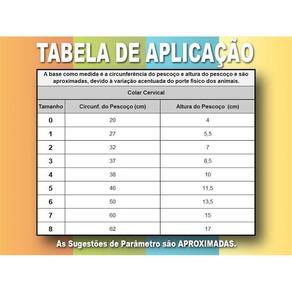 Colar Cervical Pet Med N° 2Colar protetor cervical Cães podem apresentar problemas de coluna em qualquer época da vida, principalmente quando idosos. A pet med oferece o colar protetor cervical confeccionado com tecido confortável. Uma alternativa para manter a imobilidade com muito conforto para o pet. Tudo para que a recuperação do seu amigo seja tranquila e sem estresse. Indicações Vale lembrar que a utilização do colar cervical requer orientação veterinária. Não deve ser utilizado como colar elisabetano, pois é específico para problemas cervicais. Instruções de uso: é fechado através de tiras autocolantesno dorso do animal. Atenção: para se obter o tamanho ideal, verifique a altura desde a base do pescoço até embaixo da orelha, além da circunferência do pescoço do animal. As referências de medidas de circunferência do pescoço e altura do pescoço são aproximadas, devido à variação acentuada do porte físico dos animais. Importante: supervisione o seu animal quando ele utilizar os colares protetores, pois cada animal reage de uma forma diferente. Embora a maioria dos animais não se incomode de usar os colares protetores, alguns poucos animais não se adaptam a quase nenhum acessório. Atenção: certifique-se de que os produtos estejam sempre secos, confortáveis e adequados ao tamanho do seu pet.