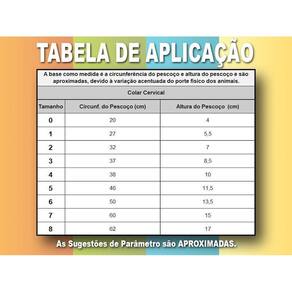 Colar Cervical Pet Med N° 5 Colar protetor cervical Cães podem apresentar problemas de coluna em qualquer época da vida, principalmente quando idosos. A pet med oferece o colar protetor cervical confeccionado com tecido confortável. Uma alternativa para manter a imobilidade com muito conforto para o pet. Tudo para que a recuperação do seu amigo seja tranquila e sem . Indicações Vale lembrar que a utilização do colar cervical requer orientação veterinária. Não deve ser utilizado como colar elisabetano, pois é específico para problemas cervicais. Instruções de uso: é fechado através de tiras autocolantesno dorso do animal. Atenção: para se obter o tamanho ideal, verifique a altura desde a base do pescoço até embaixo da orelha, além da circunferência do pescoço do animal. As referências de medidas de circunferência do pescoço e altura do pescoço são aproximadas, devido à variação acentuada do porte físico dos animais. Importante: supervisione o seu animal quando ele utilizar os colares protetores, pois cada animal reage de uma forma diferente. Embora a maioria dos animais não se incomode de usar os colares protetores, alguns poucos animais não se adaptam a quase nenhum acessório. Atenção: certifique-se de que os produtos estejam sempre secos, confortáveis e adequados ao tamanho do seu pet. Marca: Não Informado