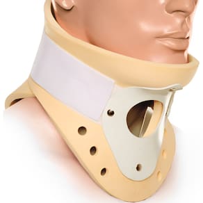 - Indicado para pós-traumatismos, torcicolos, artrites, artroses e lesões da coluna cervical - Produto imobiliza a região, possui apoio para o queixo (apoio mentoniano) - Orifício para procedimento de traqueostomia - Controle de flexão, extensão e rotação e furos para ventilação.