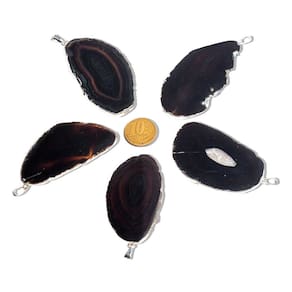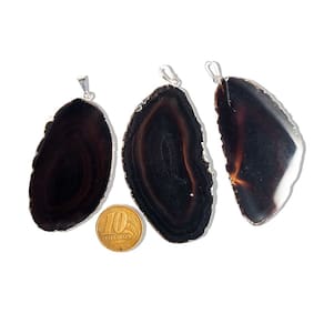 Nome da Pedra: Ágata Negra Natural. Cor: Preto profundo, com brilho marcante. Corte: Chapa de Ágata com acabamento liso e brilhante. Medidas: Entre 50 e 70 mm (aproximadamente). Peso: Entre 20 e 30 gramas. Origem: Montagem artesanal em Curvelo, MG. Observação: Produto natural; variações de tonalidade e textura podem ocorrer, tornando cada peça única.
