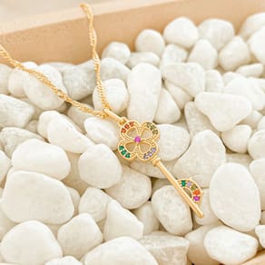 Dados técnicos: Semijóia banhada a ouro Comprimento: 45 cm Tamanho do pingente: 2,5 cm Marca: Lys Lazuli Garantia: 2 anos (Esta garantia cobre apenas o banho. Quebra, amassado, arranhado ou mau uso não estão cobertos por esta garantia) Peça antialérgica Classe da peça: Semijoia