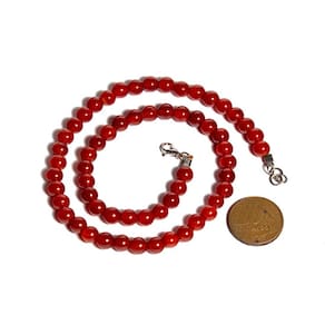 Colar Choker feito de ágata cornalina, Bolinhas de 8mm, comprimento 40cm, Gargantilha com Bolinha Pedra Natural com furos MANUAIS ao meio da pedra, Fecho Lagosta Furos bem centrais, o fio é uma Linha de Nylon multifilamento
