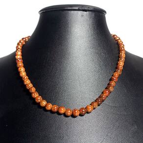 Colar Choker Bolinha 6mm Pedra Pedra do Sol Natural Rolada 40cm, Gargantilha com Bolinha Pedra Natural com furos MANUAIS ao meio da pedra, Fecho Lagostas Furos bem centrais, o fio é uma Linha de Nylon multifilamento