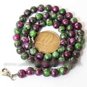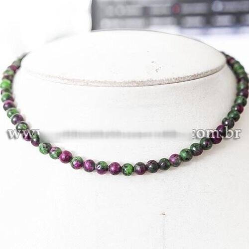 Colar Choker Bolinha 6mm Pedra Rubi incrustada na Zoisita Natural Rolada 40cm, Gargantilha com Bolinha Pedra Natural com furos MANUAIS ao meio da pedra, Fecho Lagostas Furos bem centrais, o fio é uma Linha de Nylon multifilamento