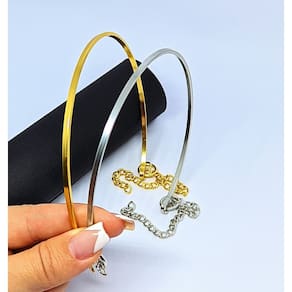 Colar Choker Feminino Elo Aro rigído liso fio 3mm Folheado a Ouro Dourado e Prata Luxo Regulável Tendência Moda Blogueira