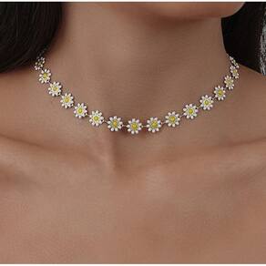 ESPECIFICAÇÃO COLAR : Produtos de alto padrão de qualidade todo prateado e flor margaridas branca De metais nacionais com proteção de verniz antialérgico. MEDIDAS Colar: 37 cm + 5CM Regulagem