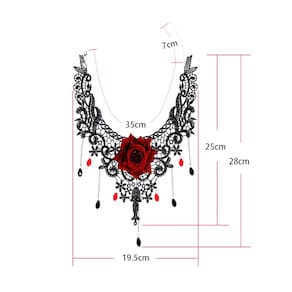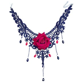 Colar Choker Gargantilha Renda Gótica Rosa Vermelha - Steampunk Vintage Festa Fantasia Halloween. Design exclusivo, a gargantilha tem estilo Retrô, com delicada renda preta, miçangas e uma linda rosa-vermelha ao centro do colar, fecho atrás em delicada corrente. Material macio e confortável, ideal para festas, Halloween, dança, no estilo gótico, etc., valoriza o seu traje, podendo combinar com diferentes fantasias. Produto elegante e sensual. O modelo da renda pode variar conforme remessa recebida, porém todos são lindos e temáticos. Verifique o tamanho do produto nas fotos em anexo. Atenção: Recebemos novos lotes semanalmente e algum detalhe pode variar conforme o lote recebido, porém o produto é o mesmo e mantém as mesmas características e qualidade. Produto de alto giro. Contem: 1 Gargantilha Choker Renda Botão de Rosa Vermelho. Fotos ilustrativas e reais do produto.