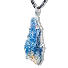 Colar Canudo de Cianita Azul Grande Natural Garra em Prateado – Elegância e Serenidade Natural Descubra o poder e a beleza da Cianita Azul com este deslumbrante colar. O pingente de pedra natural, em formato de canudo, é garra em acabamento prateado, que combina durabilidade com sofisticação. Uma peça única, ideal para quem busca equilíbrio, proteção energética e um estilo atemporal. O que irá receber: 1- Colar com Pingente em pedra Natural pronto para uso Detalhes do Cordão ou Colar: Cordão ou Colar, feito de fio encerado preto com fecho ajustável com corrente Fecho Lagosta (Niquelado) Dimensões: 50 cm comprimento x 3 mm largura Peso aproximado: 1.2 gramas (Leve) Detalhes do Pingente: Pedra: Cianita Azul natural. Corte: Formato de canudo. Medidas da Pedra: 40 a 50mm. Peso da Pedra: Pode haver variações. Montagem: Estrutura prateada reforçada, com a pedra envolta. Origem: Garimpo natural da Amazônia, Brasil. Propriedades da Cianita Azul: A Cianita Azul é conhecida por suas propriedades tranquilizantes e protetoras. Promove a serenidade mental, o equilíbrio emocional e é excelente para meditação e conexão espiritual. Sua energia sutil ajuda a dissipar bloqueios energéticos, trazendo clareza e tranquilidade. Observações: Por se tratar de uma pedra natural, variações em tonalidades, grafismos e pequenas inclusões são características normais que atestam sua autenticidade. A hidratação com óleo mineral pode ser utilizada para preservar o brilho da pedra. Marca: CristaisdeCurvelo
