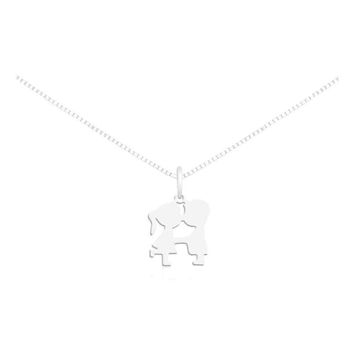 Colar Com Casal De Namorados Se Beijando Em Prata 925 Corrente veneziana com pingente de casal de namorados Em prata 925 peça cortada a laser proporcionando um excelente acabamento peça acompanha certificado de garantia permanente do teor da prata informações técnicas sobre a peça: altura do pingente: 2,1 cm aproximados comprimento da corrente: 45 cm tanto o pingente quanto a corrente são em prata 925 Marca: Mga-Br