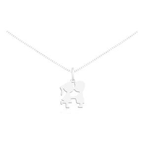 Colar Com Casal De Namorados Se Beijando Em Prata 925 Corrente veneziana com pingente de casal de namorados Em prata 925 peça cortada a laser proporcionando um excelente acabamento peça acompanha certificado de garantia permanente do teor da prata informações técnicas sobre a peça: altura do pingente: 2,1 cm aproximados comprimento da corrente: 45 cm tanto o pingente quanto a corrente são em prata 925 Marca: Mga-Br