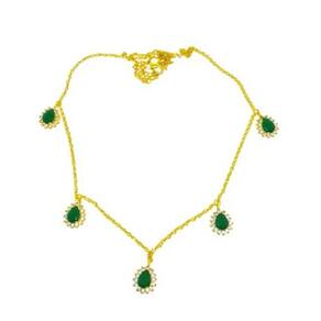 Colar com pedras Zircônia na cor Esmeralda folheado a Ouro 18k. Colar maravilhoso para todas as ocasiões em que você quiser desfrutar da vida noturna ou quando precisar de um charme extra. O destaque deste colar fica por conta dos 5 pingentes com pedras zircônia na cor Esmeralda que dá um toque especial de sofisticação e elegância. O formato ao redor dos corações formam um contorno de raios navetes. Você pode fazer diversas combinações, basta conferir as mais variadas peças em nosso site para arrasar. Dados Técnicos: Marca: Visujóias Pedra: Zircônia na cor Esmeralda com Navetes ao redor de todos os pingentes. Comprimento: 60 Cm Quantidade de pingentes: 5 Pingentes em formato de gota. Peso: 7 Gramas. Folheação: Ouro 18K : De 6 meses quanto a folheação e de 1 ano para defeitos provenientes de fabricação. Todas as peças possuem tratamento antialérgico Marca: Não Informado Ean: 2000000016863