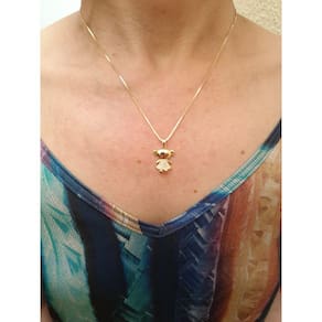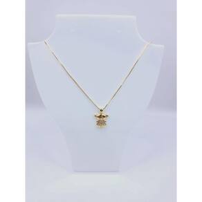Corrente com pingente de menina e zircônias brancas em malha veneziana banhada a ouro.