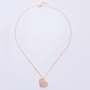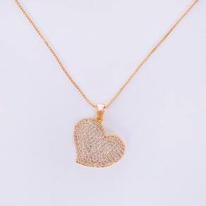 O colar de semijoia coração em microzircônias cristais é luxuoso que te deixa em destaque em qualquer situação.