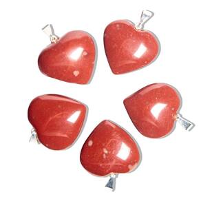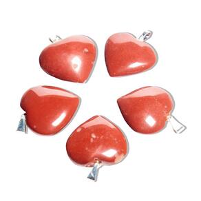 Formato: Coração. Nome da Pedra: Jaspe Vermelho Africano. Cor: Vermelho predominante com veios únicos em tons brancos e negros. Corte: Lapidação artesanal no formato de coração, ideal para acessórios como colares e pulseiras. Clareza: Brilhante, sem transparência, destacando a beleza natural da pedra. Tamanho: Aproximadamente 20 x 25 mm, com pequenas variações naturais. Montagem: Pino preso sob furo com perinha para corrente, acabamento em prateado, conferindo um toque moderno e sofisticado. Peso do Pingente: Cerca de 20 quilates, com variações naturais.