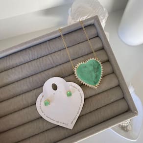 Colar coração max crav. Esmeralda colombiana fusion ródio Colar max coração semijoia de luxo com fino acabamento. Especificações:Material: semijoia banho ouro 18kCorrente: 40 cm + 7 cm extensorMedida: pingente coração 3,0 cm largura x 3,0 cm altura Pedra: fusion alta joalheria O que vem incluso1 colar max coração cravejado zircônias 1 linda caixa versally Pedra fusion nada mais é que a fusão de pequenos cristais luxuosos com a gema da verdadeira pedra dando esse efeito fusion maravilhoso e apaixonante. As pedras fusion estão super em alta por sua beleza e qualidade. Garanta já a sua e expresse toda a sua beleza com nossas peças.