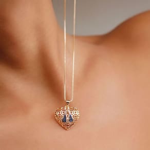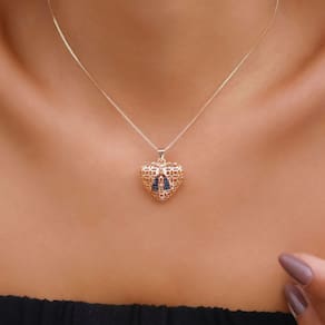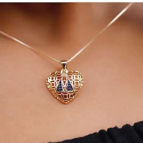 Detalhes Do Produto Corrente - Modelo Veneziana 40 cm + 5 cm de extensor Pingente - Coração Vazado com uma Nossa Senhora Aparecida no centro com o manto cravejado de zircônia azul Material - Semijoia com banho de ouro 18k Acompanha - Bolsinha de veludo com botão personalizada para guardar sua semijoia