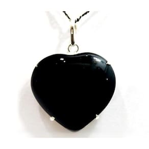 Pingente Coração Liso Pedra Obsidiana Negra Montagem na garra com perinha em Prata 950 para passar o cordão Pedra Genuina com origem garimpo lapidação e montagem manual