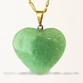 Pingente Coração Pedra Quartzo Verde Natural de garimpo Lapidação Coração, ideal para colar e pulseiras, ja vai montado dourado ouro Flasch