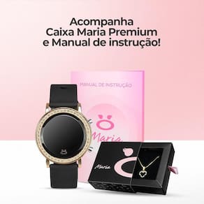 Kit Luxo Maria - Relógio Digital Orizom Maria Preto com Detalhes Dourados + Colar Banhado 18k com Pingente de Coração + Caixa PremiumEste kit exclusivo oferece o equilíbrio perfeito entre sofisticação e modernidade. Surpreenda alguém especial com o relógio digital feminino Orizom Maria, em preto com detalhes em dourado e strass, confeccionado em aço inox banhado e com pulseira em silicone para conforto duradouro. Acompanha também um colar banhado em 18k, com pingente em forma de coração e strass, apresentado em uma elegante caixa premium Orizom Maria para armazenar com estilo.Com um design elegante e luxuoso, o relógio Orizom Maria possui um diâmetro aproximado de 4cm, garantindo um ajuste confortável e cheio de estilo. O colar banhado 18k complementa o kit, proporcionando um brilho encantador com o pingente em forma de coração.Este kit é indicado para presentear adolescentes e mulheres que apreciam peças refinadas e modernas. Ideal para ocasiões especiais, esse presente inesquecível une a beleza do relógio digital com a elegância do colar banhado, proporcionando um toque de luxo e sofisticação.Surpreenda alguém especial com este kit exclusivo que reflete o bom gosto e a atenção aos detalhes.