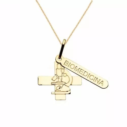 Colar Cordão Biomedicina Chapa e Plaquinha Folheado 18k