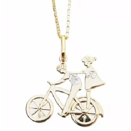Colar Cordão Casal Namorados na Bicicleta Folheado 18k