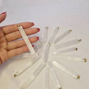 Benefícios Energéticos: Purificação e Limpeza Energética: A selenita é uma das pedras mais eficazes na purificação e limpeza de energias negativas. Ela tem o poder de limpar a aura e os chakras, promovendo um fluxo energético mais harmonioso e equilibrado. Apoio ao Crescimento Espiritual: Esta pedra é ideal para quem busca expandir a consciência espiritual e aumentar a conexão com o eu superior. A selenita ajuda a desbloquear a intuição e facilita a meditação, proporcionando uma maior clareza mental e visão interior. Proteção e Estabilidade: A selenita também é altamente protetora, criando um campo de energia que afasta influências negativas e mantém o portador envolto em boas vibrações. Ela também oferece estabilidade emocional, trazendo serenidade e calma para os momentos de incerteza.