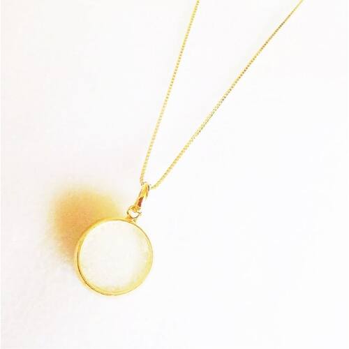 Corrente mede aproximadamente 45 Cm, pingente aproximadamente 2 Cm.Peças Folheadas A Ouro 18kQuando você comprar peças folheadas, duas coisas devem serem levadas em consideração, a primeira é que quanto mais cuidados você tiver mais durarão e que um dia infelizmente as peças folheadas perderão o brilho e a cor, afinal, as peças folheadas não são fabricadas com ouro maciço. Segue alguns cuidados para aumentar a durabilidade: Não pode molhar, praticar exercícios físicos ou trabalhos forçados, suor excessivo, utilizar para dormir. Quando for utilizar qualquer tipo de cosméticos, cremes, perfume, coloque a peça folheada somente após 30 minutos. Aconselhamos a utilizar seu folheado mais para sair. Assim você irá diminuir os riscos que as citações acima ocorram. Nossa garantia é de 3 meses quanto a defeitos de fábrica.