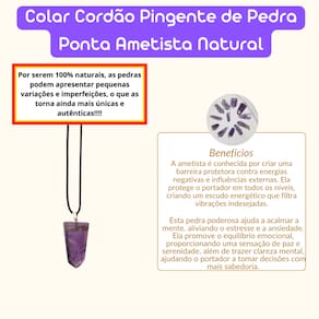 Colar Cordão com Pingente de Pedra Ponta Ametista Natural Este colar com cordão e pingente de pedra ponta ametista natural é uma peça única que combina a beleza encantadora da ametista com suas poderosas propriedades espirituais e curativas. A ametista é uma pedra de equilíbrio e proteção, amplamente reconhecida por sua capacidade de promover a paz interior e o crescimento espiritual. Ao ser usada como pingente, ela não apenas se torna um acessório sofisticado, mas também atua como um amuleto de proteção, serenidade e clareza mental. Benefícios Energéticos: Equilíbrio e Calma Emocional: A ametista é famosa por suas propriedades calmantes, ajudando a reduzir o desconforto e a ansiedade. Ela promove o equilíbrio emocional, permitindo que o portador se sinta mais tranquilo e centrado, mesmo em momentos de desafio. Apoio ao Crescimento Espiritual e Meditação: A ametista é uma excelente pedra para quem busca crescimento espiritual e maior clareza mental. Ela facilita a meditação e a conexão com planos espirituais superiores, promovendo a sabedoria e a intuição. Proteção Espiritual e Energética: Esta pedra é eficaz na proteção espiritual, criando uma barreira contra energias negativas e influências externas. Usar este colar ajuda a manter a energia do portador pura e protegida, favorecendo uma conexão mais profunda com o eu interior. Enviamos em até 24 horas após a confirmação do pagamento! Se você tiver alguma dúvida, não hesite em nos mandar uma mensagem! Responderemos rapidamente para ajudá-lo da melhor forma possível! Marca: Meta venda em lote