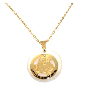 Corrente mede aproximadamente 45 Cm, pingente aproximadamente 2,5 Cm. Quando comprar peças folheadas, duas coisas devem ser levadas em consideração, a primeira que quanto mais cuidado você ter, mais elas irão durar e que um dia infelizmente elas irão perder o brilho e a cor, afinal não são de ouro maciço. Cuidados: Não pode molhar, praticar exercícios físicos ou trabalhos forçados, suor excessivo, utilizar para dormir. Quando for utilizar qualquer tipo de cosméticos, cremes, perfume, coloque a peça folheada somente após 30 minutos. Aconselhamos a utilizar seu folheado mais para sair. Assim você irá diminuir os riscos que as citações acima ocorram. Quanto mais cuidar, mais irá durar. Nossa é de 3 meses quanto a defeitos de fábrica. Quando comprar peças folheadas, duas coisas devem ser levadas em consideração, a primeira que quanto mais cuidado você ter, mais elas irão durar e que um dia infelizmente elas irão perder o brilho e a cor, afinal não são de ouro maciço. Cuidados: Não pode molhar, praticar exercícios físicos ou trabalhos forçados, suor excessivo, utilizar para dormir. Quando for utilizar qualquer tipo de cosméticos, cremes, perfume, coloque a peça folheada somente após 30 minutos. Aconselhamos a utilizar seu folheado mais para sair. Assim você irá diminuir os riscos que as citações acima ocorram. Quanto mais cuidar, mais ira durar. Nossa é de 3 meses quanto a defeitos de fábrica.