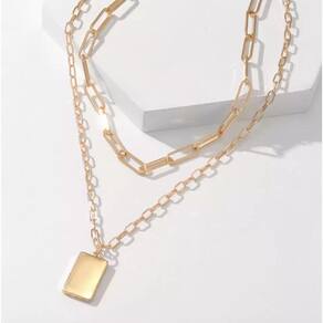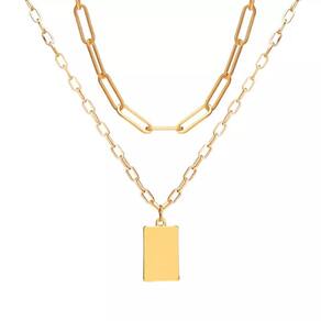 Colar corrente conjunto 2 peças dourado pingente n5211