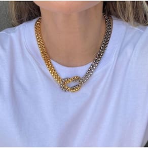 Apresentamos com orgulho o nosso deslumbrante Colar em Corrente Veneziana com Detalhe em Nó Direito, uma joia que combina a elegância clássica da corrente veneziana com a beleza e o simbolismo profundo do nó direito. É uma escolha de alta qualidade que é sempre atual. O destaque deste colar é o detalhe em nó direito. O nó direito é um símbolo de união, laços fortes e conexões duradouras. Ele representa a ligação entre duas partes, seja entre amigos, familiares ou amantes. Este colar é uma maneira subtil e sofisticada de mostrar o apreço por relações significativas em sua vida. Este colar é uma declaração de estilo e conexão. Use-o para elevar seu visual diário ou para complementar trajes mais formais. Seja qual for a ocasião, o detalhe em nó direito adiciona um toque especial e simbólico à sua aparência. O Colar em Corrente Veneziana com Detalhe em Nó Direito também é uma excelente escolha de presente.