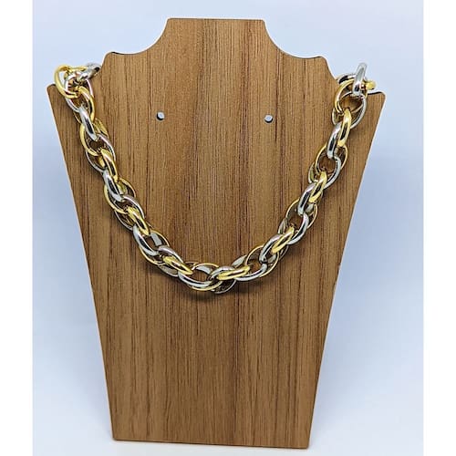 Este produto da grife Bina Castro é feito em Zamac com banho italiano garantindo a qualidade e durabilidade da peça.Uma peça delicada, com muita leveza, com design jovem e alegre. Essa peça foi feita para acompanhar os mais diversos momentos da sua vida.Elos grossa são levemente achatados e ao longo de toda corrente eles são ao mesmo tamanho.Além de perfeito o Colar de Elos é um acessório atemporal cheio de estilo e elegância para completar e iluminar os seus looks. Aposta certa!DADOS TÉCNICOSMedidas do Choker:Elos da Corrente : Oval Duplo Dourado com Prata Mix Material ; Metal Folheado com verniz cataforético Genero: feminino Comprimento: 40CmCom Extensor: 5CmDiâmetro: 3,5mmFecho: boia