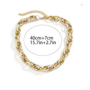 Colar oco simples para mulheres, curto, misturado de cores, Corrente elos duplo mix prata com dourado moda, presente para Senhoras Feminina Lançamento novo 2024