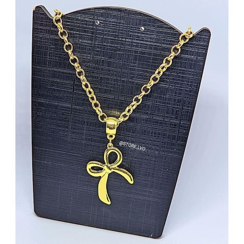 Colar Corrente Feminino com Pingente Laço Delicado Elo Português 6mm Folheado Ouro 18k Dourado Inspirado Tendência Moda